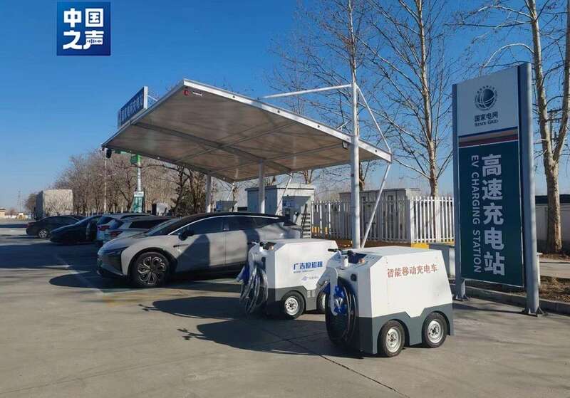 记者注意到,从今年春运开始,智能移动充电车、充电机器人等新型充电装置已经在安徽、江苏等地部分服务区得到应用。