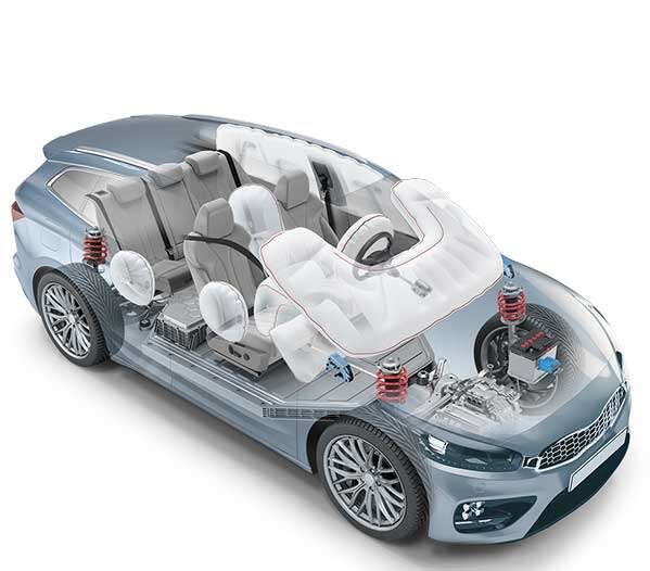 按碰撞类型划分,安全气囊可以分为正面碰撞防护安全气囊、侧面碰撞防护安全气囊、顶部碰撞防护安全气囊等,根据人体位置划分,分为头部安全气囊、膝部安全气囊、腿部安全气囊等。