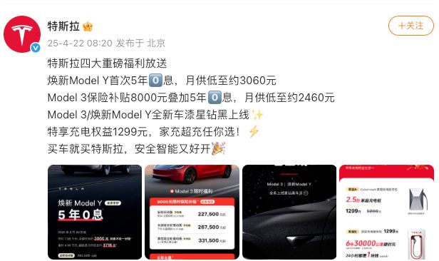 特斯拉中国:焕新Model Y全系5年0息,Model 3限时补贴叠加低息政策
