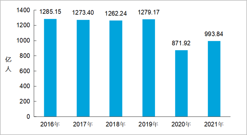 全年完成营业性客运量50.87亿人,比上年下降26.2%,完成旅客周转量3627.54亿人公里、下降21.8%。