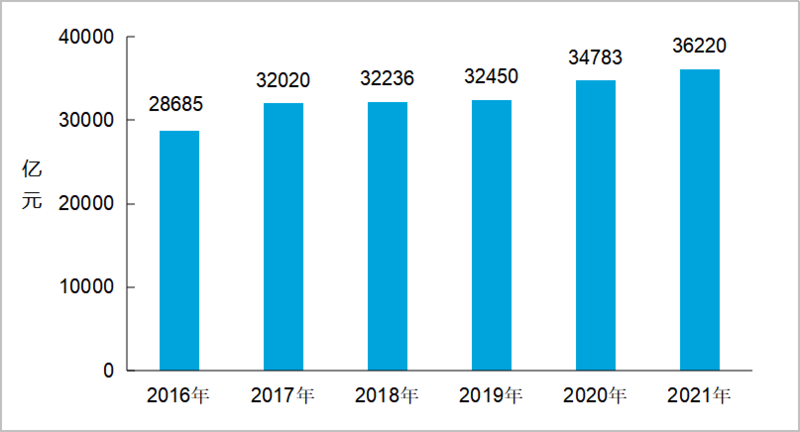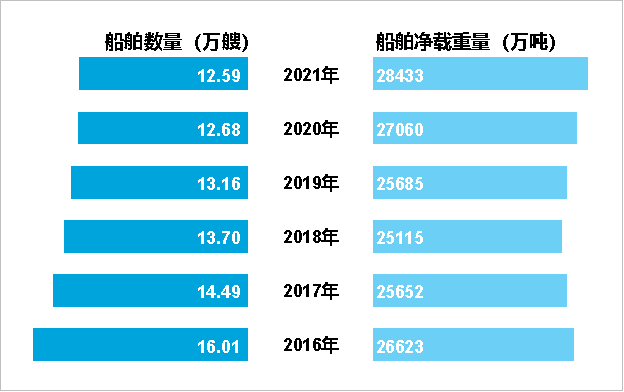 图5 2016-2021年年末全国水上运输船舶拥有量