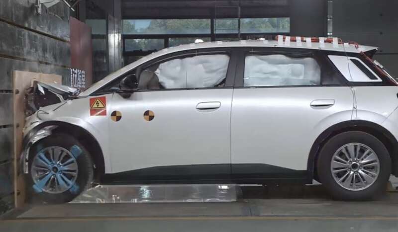 采用E-NCAP五星标准研发的广汽埃安UT正在进行碰撞测试。广汽埃安供图