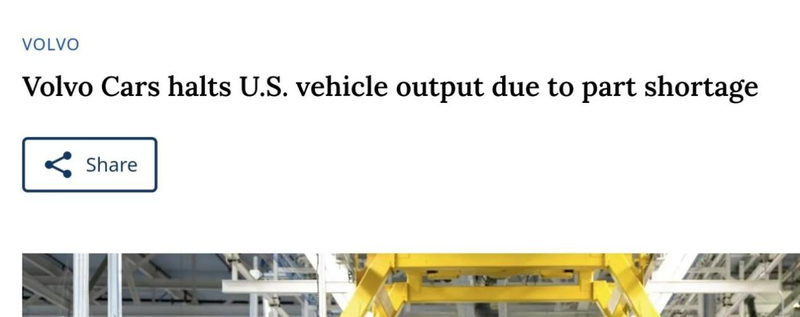 因零部件短缺,沃尔沃汽车在美国暂停生产