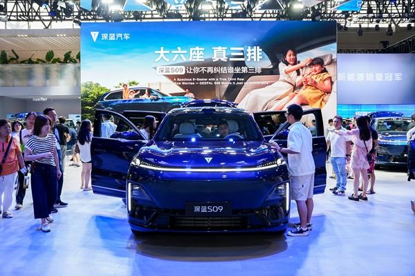 6月7日,总面积达16万平方米的2025重庆国际车展,共迎来93款新车发布。事实上,只有供应商、车企、经销商共同努力,才能保障新能源汽车产业链高质量发展。图为消费者在深蓝汽车展台选购。