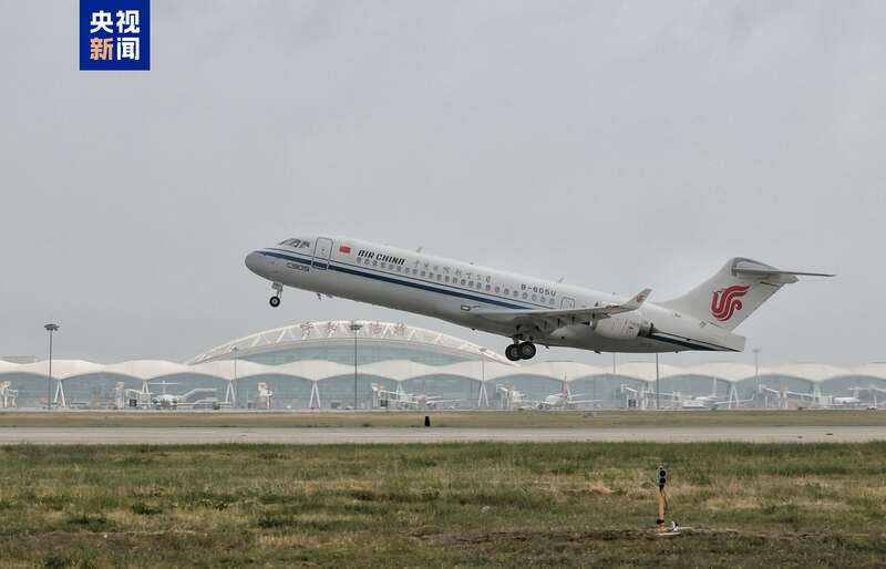 “身披”五星红旗 国产飞机C909首次载旗执行国际商业航班