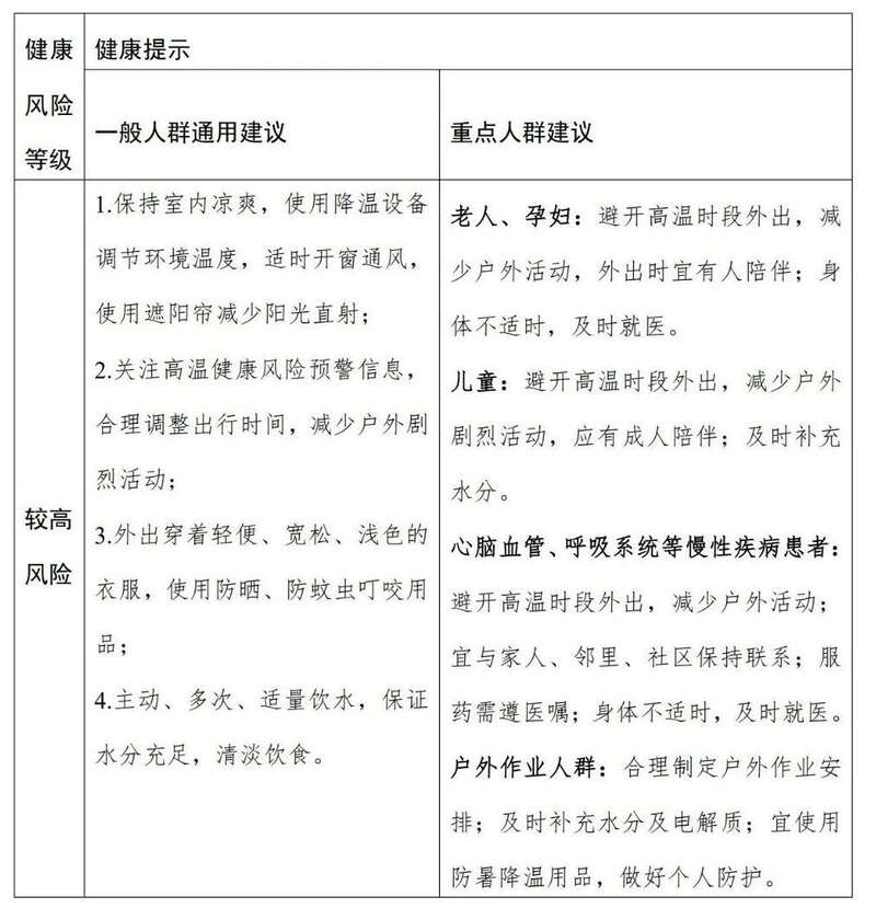 全国高温健康风险预警产品首次发布,与高温预警有何不同?中国气象局公共气象服务中心副首席李怡介绍,与气象部门发布的常规高温预警不同,高温健康风险预警更多表征了高温对健康的影响,与疾病风险关联,反映了温度升高可能导致疾病风险的增加。