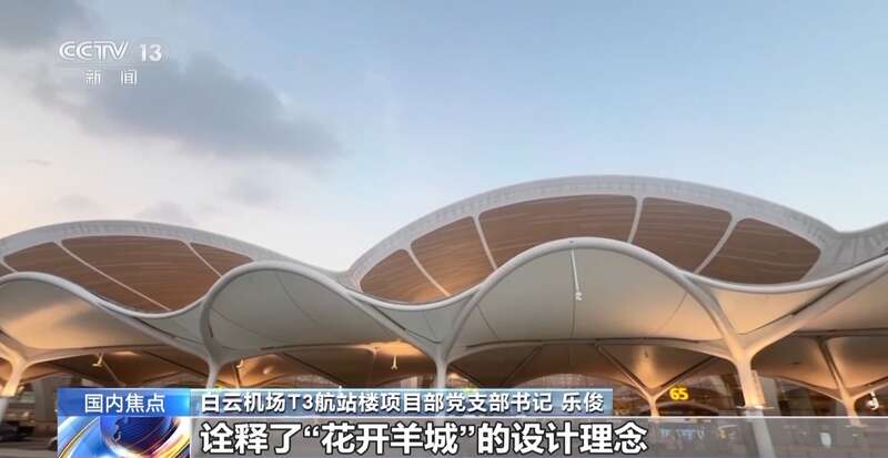 白云机场T3航站楼项目部党支部书记 乐俊:我们特意选用了白色,既有效解决了大面积原色不锈钢板在不同视角下的光反射不均匀及强光反射污染的问题,又能结合花瓣型建筑檐口的设计,模拟云朵、花瓣,诠释了“花开羊城”的设计理念。这也是国内首个运用连续着色不锈钢屋面的机场。