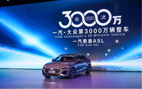 10月30日晚,随着一辆一汽奥迪A5L领航版在长春基地正式下线,一汽-大众迎来新的历史性时刻——成为国内首家产销突破3000万辆的乘用车企业。