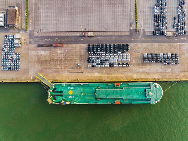 今年1月至11月,中国汽车出口634.3万辆,同比增长18.7%。图为广东省广州港南沙汽车码头上等待出海的汽车。视觉中国供图