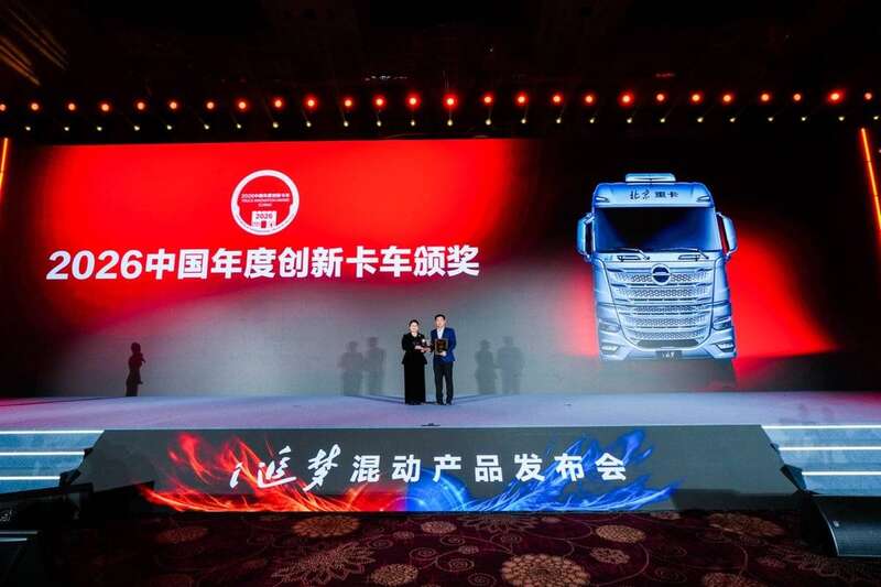 北京重卡i追梦混动牵引车以全新的产品设计理念、颠覆性的技术创新、优秀的整车成本控制以及客户体验,解决了当前混动市场用户核心痛点,斩获“2026中国创新卡车奖(2026 Truck Innovation Award (China))”。在欧洲国际年度卡车规程基础上举行中国年度卡车(CTOY)奖项,评选条件更加严苛的奖项,组委会成员由来自中国的商用车媒体、欧洲的商用车杂志、国内资深卡车用户和行业专家组成。北京重卡i追梦混动牵引车获此殊荣标志着在技术性和权威性上得到国内外商用车企业的高度认可。