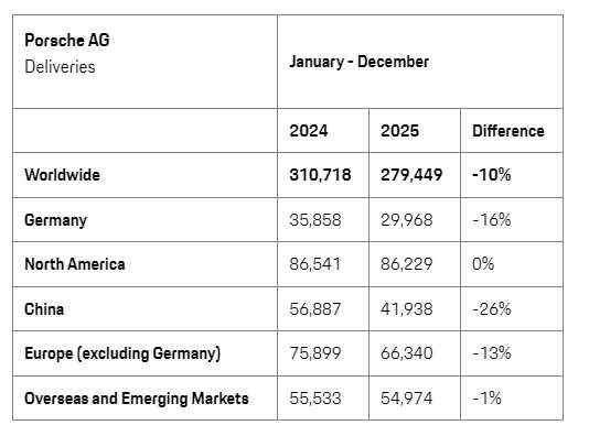 中新经纬1月16日电 据保时捷官网16日消息,公司2025年向全球客户交付共计279449辆汽车,上一年交付量为310718辆,同比下降10%。