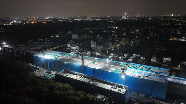 攻坚复杂岩溶地质,广佛西环城际炭步站主体提前封顶