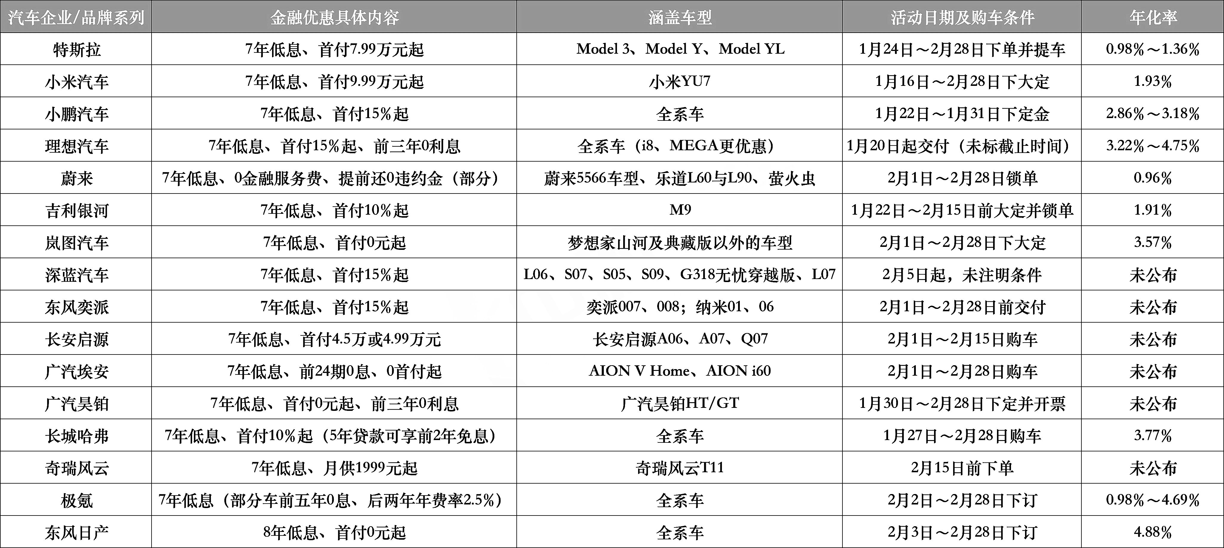 公开报道显示,今年1月,自特斯拉推出7年超长期低息购车方案后,小米、理想、吉利、蔚来等多家车企陆续跟进。据中新经纬不完全统计,截至发稿,至少有16家车企或品牌推出相关措施。
