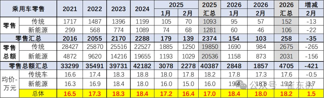 据乘联分会秘书长崔东树发布的数据显示,2026年2月乘用车零售均价达到18.0万元,较去年同期提升1.5万元,与2025年全年均价17.0万元相比,也出现了明显的“翘尾”行情。这条“先降后升”的价格曲线,勾勒出中国汽车市场正在经历的深刻转型——从无序的价格混战,走向政策引导、产品结构优化与市场秩序重建共同作用的价值竞争新阶段。