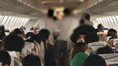日本全日空航空公司一架客机飞行途中,一名男性乘客试图打开舱内